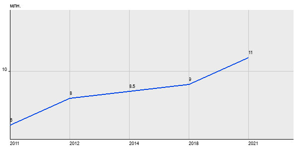 6 млн. руб, а в 2021 году - 11 млн. руб. Таким образом, средняя стоимость трёхкомнатных квартир в районе "Коптево" за