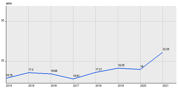 15.75 млн. руб, а в 2021 году - 22.25 млн. руб. Таким образом, средняя стоимость трёхкомнатных квартир в районе "Сокольники" за