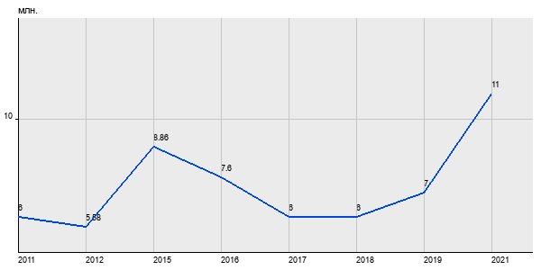 6 млн. руб, а в 2021 году - 11 млн. руб. Таким образом, средняя стоимость двухкомнатных квартир в районе "Перово" за