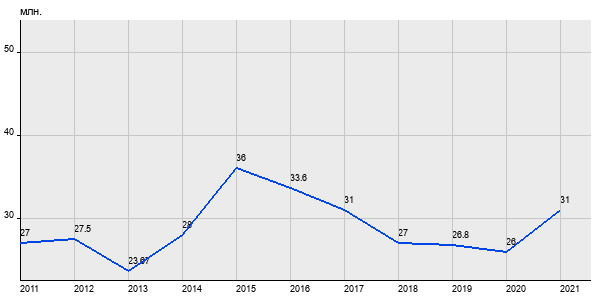 27 млн. руб, а в 2021 году - 31 млн. руб. Таким образом, средняя стоимость трёхкомнатных квартир в районе "Тропарёво-Никулино" за
