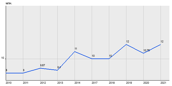 8 млн. руб, а в 2021 году - 12 млн. руб. Таким образом, средняя стоимость трёхкомнатных квартир в районе "Отрадное" за