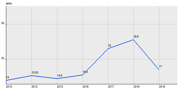 14 млн. руб, а в 2019 году - 17 млн. руб. Таким образом, средняя стоимость двухкомнатных квартир в районе "Якиманка" за