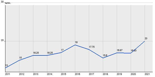 13 млн. руб, а в 2021 году - 20 млн. руб. Таким образом, средняя стоимость трёхкомнатных квартир в районе "Кунцево" за