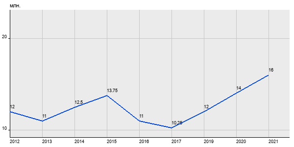 12 млн. руб, а в 2021 году - 16 млн. руб. Таким образом, средняя стоимость трёхкомнатных квартир в районе "Печатники" за