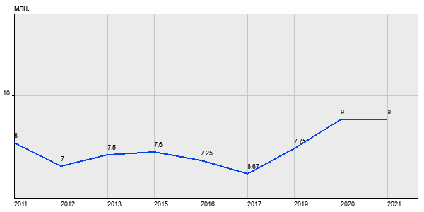 8 млн. руб, а в 2021 году - 9 млн. руб. Таким образом, средняя стоимость трёхкомнатных квартир в районе "Вешняки" за