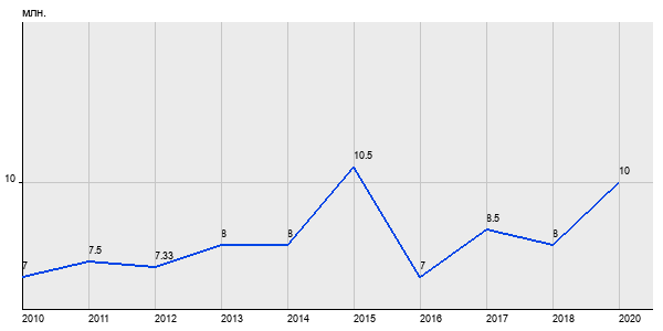 7 млн. руб, а в 2020 году - 10 млн. руб. Таким образом, средняя стоимость трёхкомнатных квартир в районе "Отрадное" за