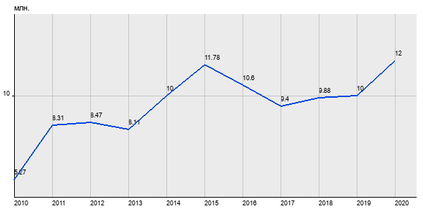 5.27 млн. руб, а в 2020 году - 12 млн. руб. Таким образом, средняя стоимость двухкомнатных квартир в районе "Абрамово" за