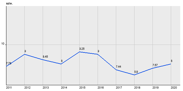 7.78 млн. руб, а в 2020 году - 8 млн. руб. Таким образом, средняя стоимость трёхкомнатных квартир в районе "Южное Бутово" за