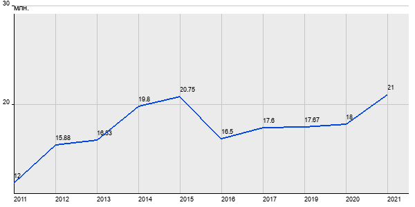 12 млн. руб, а в 2021 году - 21 млн. руб. Таким образом, средняя стоимость двухкомнатных квартир в районе "Лосиноостровский" за