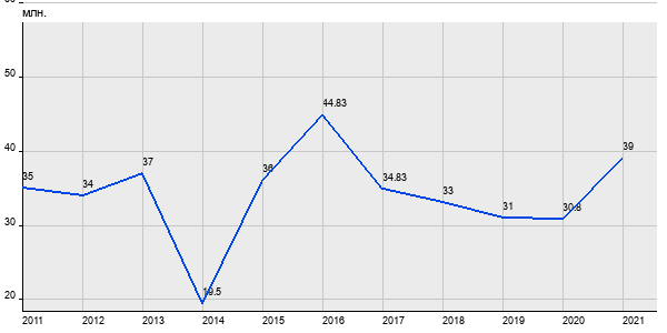 35 млн. руб, а в 2021 году - 39 млн. руб. Таким образом, средняя стоимость трёхкомнатных квартир в районе "Крылатское" за