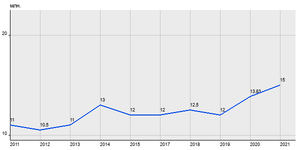 11 млн. руб, а в 2021 году - 15 млн. руб. Таким образом, средняя стоимость трёхкомнатных квартир в районе "Чертаново Южное" за