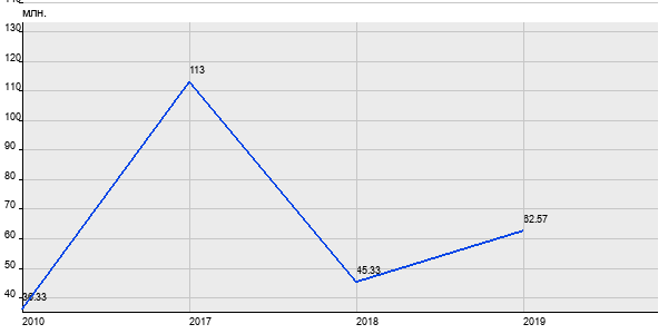 36.33 млн. руб, а в 2019 году - 62.57 млн. руб. Таким образом, средняя стоимость трёхкомнатных квартир в районе "Крылатское" за