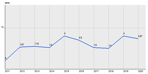 6 млн. руб, а в 2020 году - 8.67 млн. руб. Таким образом, средняя стоимость трёхкомнатных квартир в районе "Гольяново" за