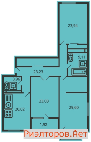 Рыночная стоимость квартиры: 23,400 млн руб.