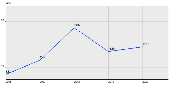 8.33 млн. руб, а в 2020 году - 14.47 млн. руб. Таким образом, средняя стоимость двухкомнатных квартир в районе "Басманный" за
