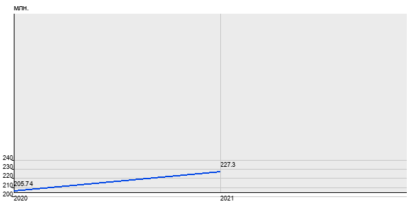 205.74 млн. руб, а в 2021 году - 227.3 млн. руб. Таким образом, средняя стоимость четырёхкомнатных квартир в районе "Якиманка" за